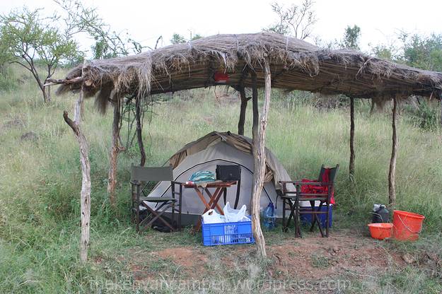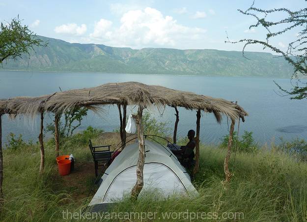 The campsite has 2 of the above shelters so this site will hold about 4 2-man tents maximum, its too hot not to have the additional shelter otherwise. Further more the ground is very rocky and the only flat areas are beneath the shelters, quite unlike the sandy shores at Samburu National Reserve. There are no facilities here. That means no running water, no toilets and no showers. You will have to totally self sufficient. There is no dead wood to collect so you will have to bring your own or do without. NEVER cut trees or shrubs for firewood.