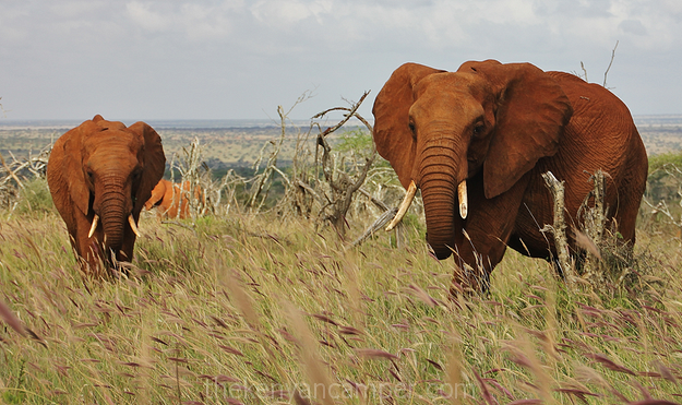There was a slight shower while still on the public road to Taveta town and these elephants held us up while they drank their fill from the road drainage. Took a truck giving a slight toot on its horn to clear the road and get us moving again.